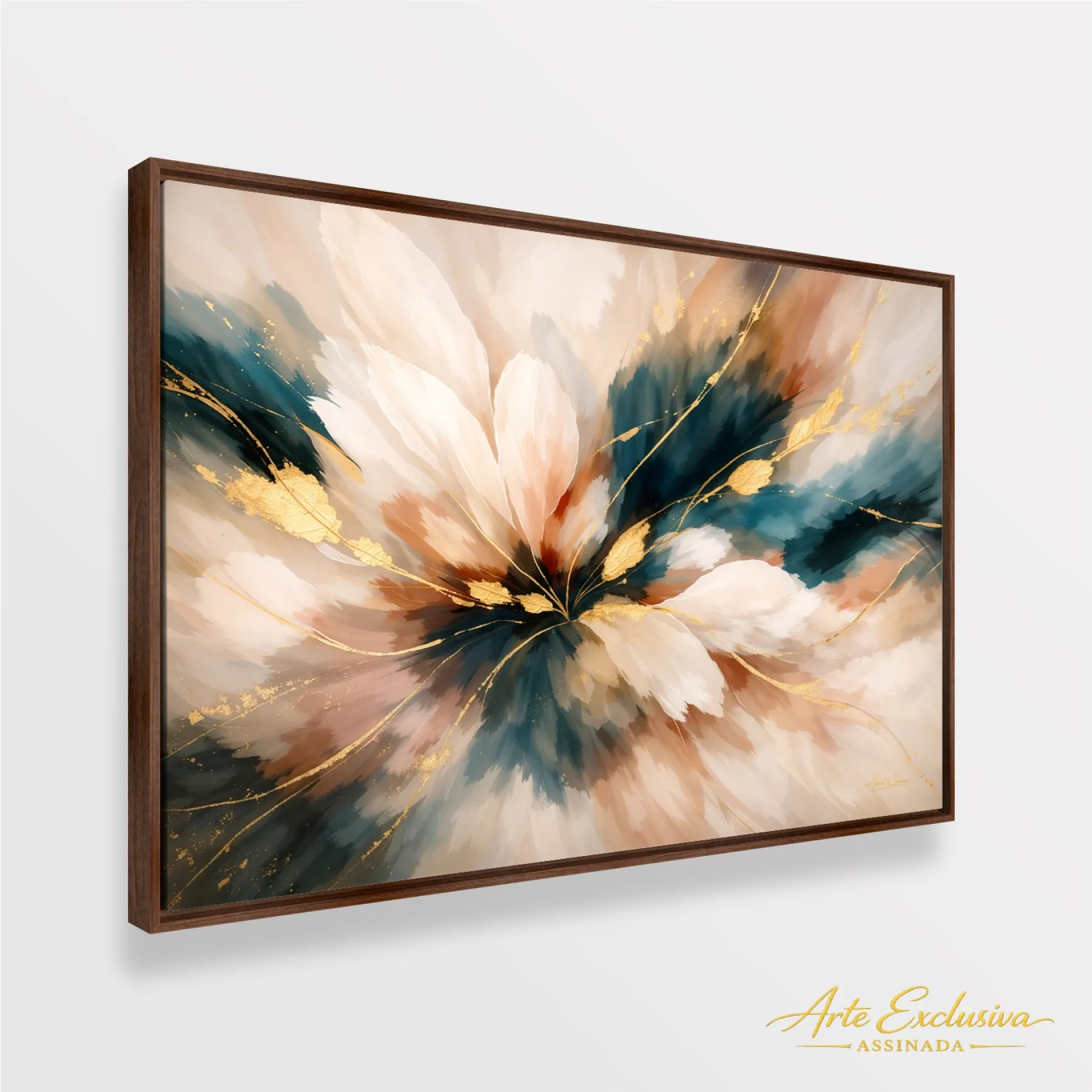 Escolha entre a sofisticação da moldura flutuante com 4,5cm de espessura ou o impacto visual da tela decorativa com borda infinita com 3,6cm de espessura. Cada quadro é produzido com materiais nobres e acabamento minucioso, garantindo durabilidade, elegância e padrão de galeria internacional no ambiente.