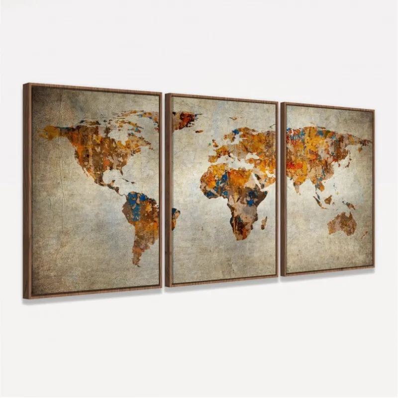 Quadro Mapa Mundi em Arte Rústica Vintage decorativo