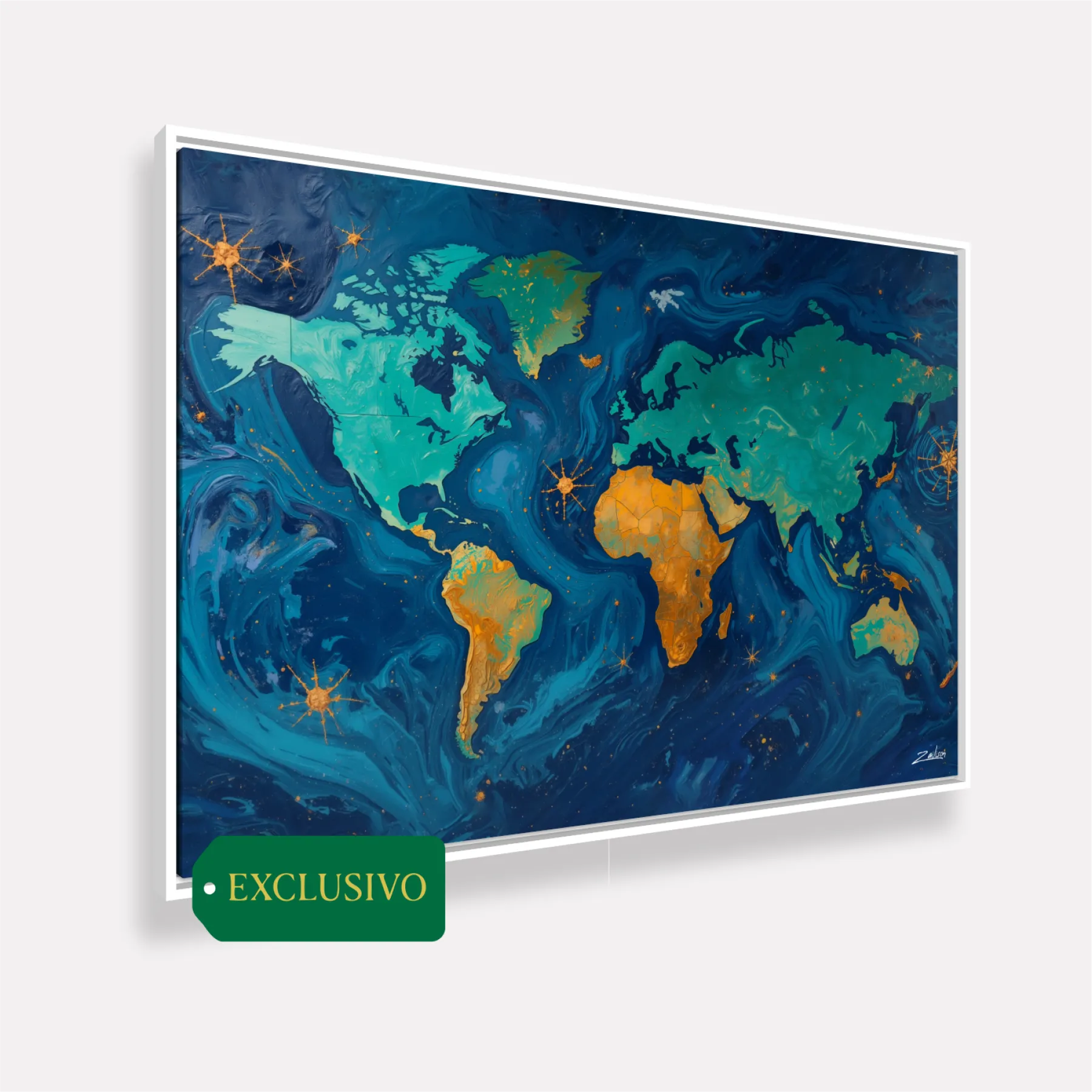 Vibrante, criativo e cheio de emoção, o quadro Mapa Mundi Noite Estrelada transmite uma atmosfera única. Cheio de inspiração na obra-prima de Van Gogh, transforma os apaixonantes mapas em uma versão inédita.