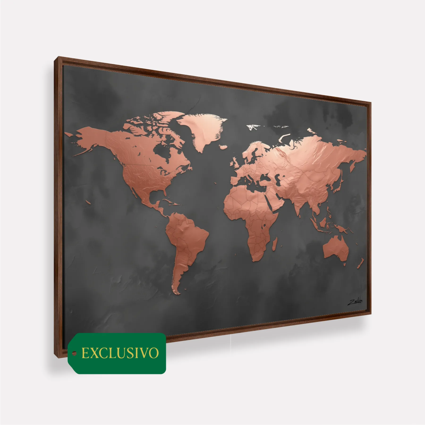 Quadro Mapa Mundi Ouro Rosé em Grafite