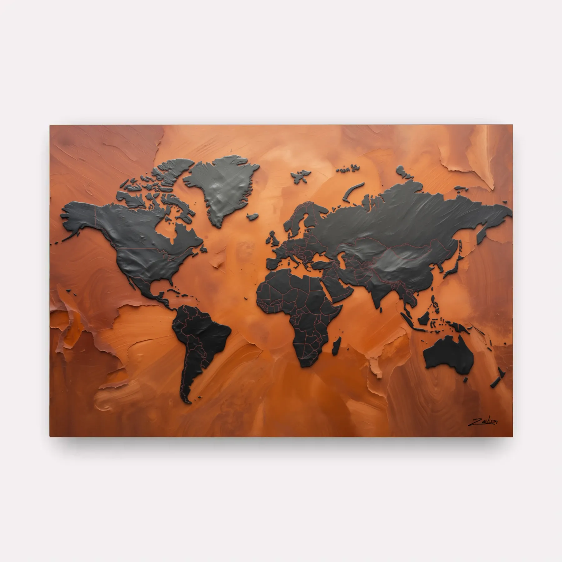 Quadro Mapa Mundi Terracota Vibrante E Grafite Metálico