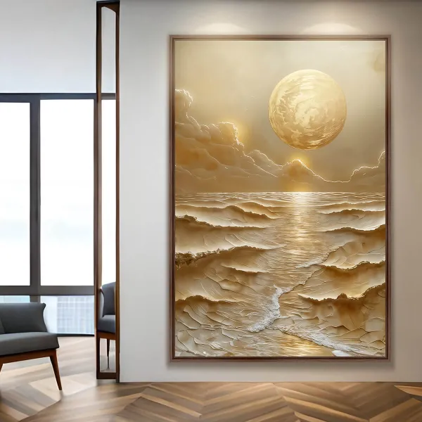 Quadro Artístico Abstrato Aura de Ouro com Azul